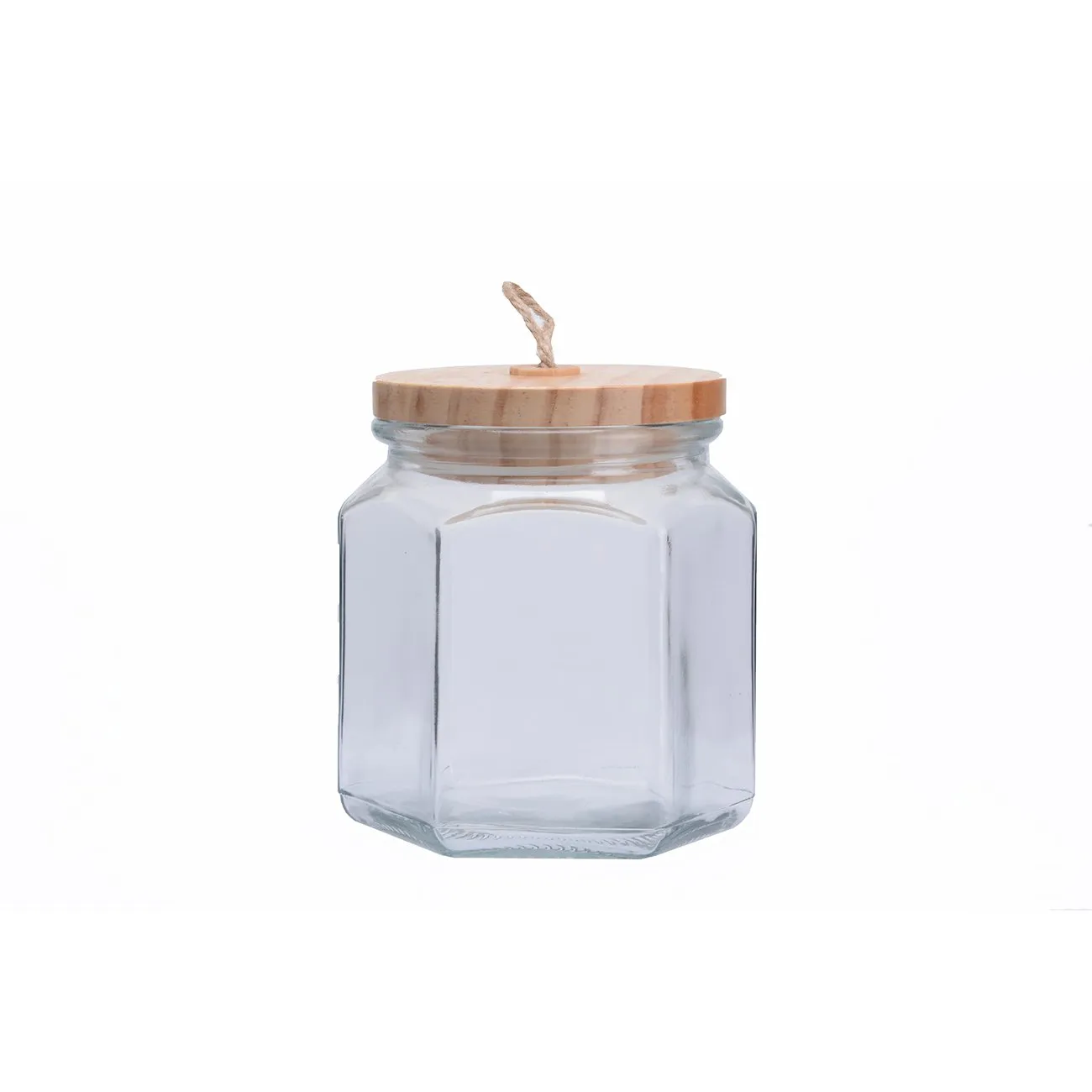 Γυάλινα δοχεία τροφίμων , στρογγυλά και πολύγωνα με ξύλινο  σφηνοειδές πώμα.