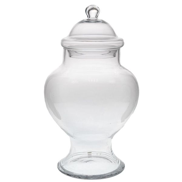 Κομψό γυάλινο βάζο με καπάκι για κουφέτα, ιδανικό για μπομπονιέρες και διακόσμηση εκδηλώσεων. Το διαφανές γυαλί αναδεικνύει τα κουφέτα, ενώ το καπάκι διασφαλίζει φρεσκάδα και προστασία. Μια πρακτική και καλαίσθητη λύση για γάμο, βάπτιση ή κάθε ξεχωριστή περίσταση.