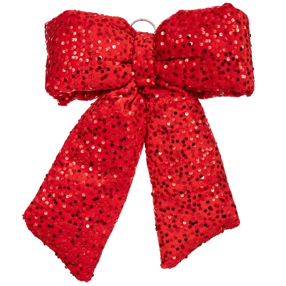 Εντυπωσιακός κόκκινος φιόγκος (30×40εκ.), γεμάτος λαμπερές πούλιες. Προσθέστε μια δόση πολυτέλειας και γιορτινής λάμψης στο δέντρο, το στεφάνι ή οποιοδήποτε σημείο του σπιτιού σας.