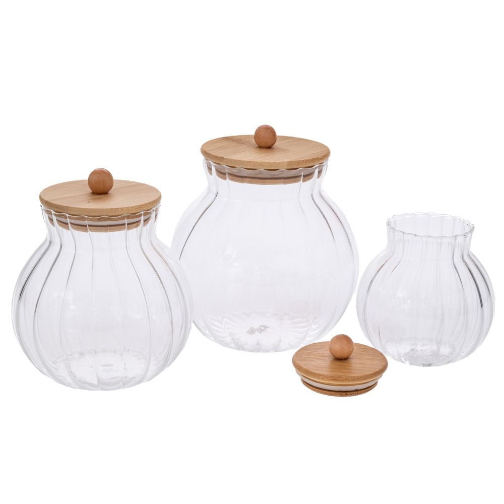 ΣΕΤ/3 ΓΥΑΛΙΝΑ ΔΟΧΕΙΑ ΜΕ ΑΕΡΟΣΤΕΓΕΣ ΞΥΛΙΝΟ ΚΑΠΑΚΙ Φ15Χ16,5 Φ12,5Χ14,5 Φ11Χ12ΕΚ