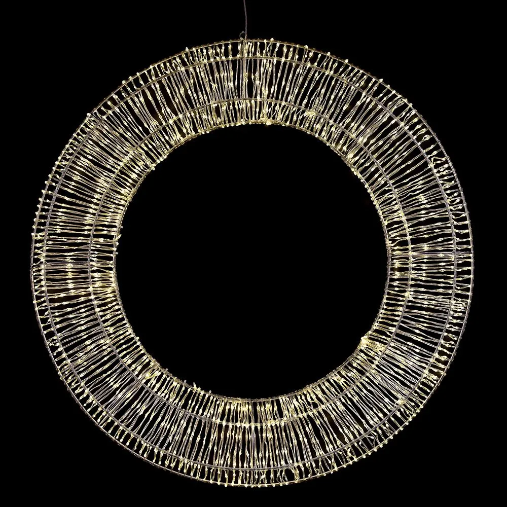 Εντυπωσιακό κρεμαστό στεφάνι 80εκ. με 1600 LED και σταθερό ζεστό λευκό φως. Με ανθεκτικό μεταλλικό σκελετό, είναι ιδανικό για να φωτίσει μοναδικά κάθε εσωτερικό ή εξωτερικό χώρο.