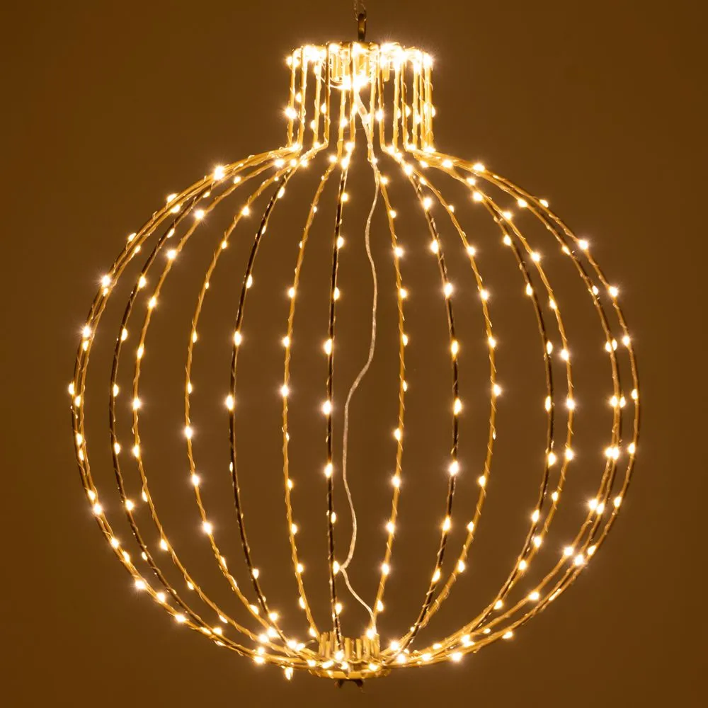 Φωτιζόμενη χρυσή μεταλλική μπάλα διαμέτρου 56εκ., με 320 LED θερμού λευκού φωτός. Διαθέτει πιστοποίηση IP44, καθιστώντας την κατάλληλη και ασφαλή για διακόσμηση τόσο σε εσωτερικούς όσο και σε εξωτερικούς χώρους.